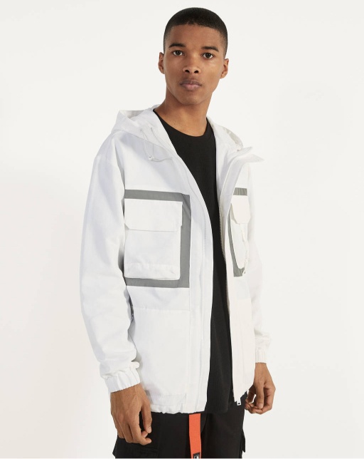The insulated jacket is made of leather. A light layer of insulation. Details: stand-up collar, zipper, two pockets on the sides.